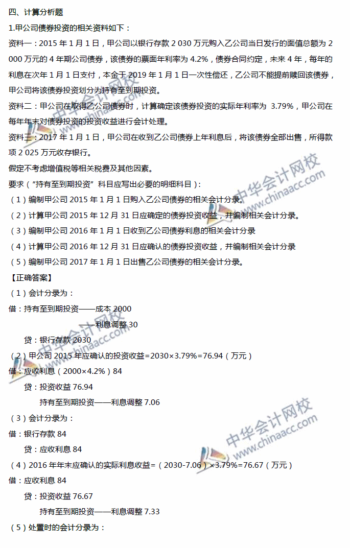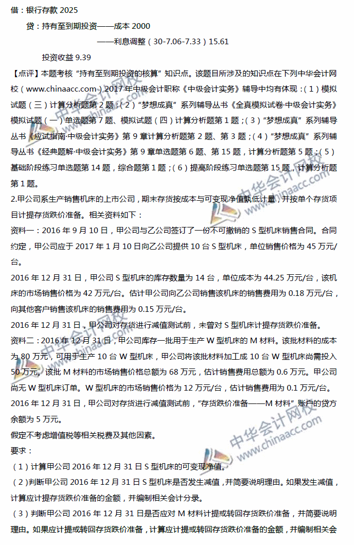 2017年中级会计职称《中级会计实务》计算题及答案解析第二批02-19