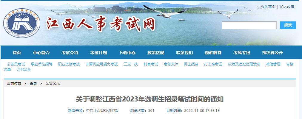 原文标题:关于调整江西省2023年选调生招录笔试时间的通知