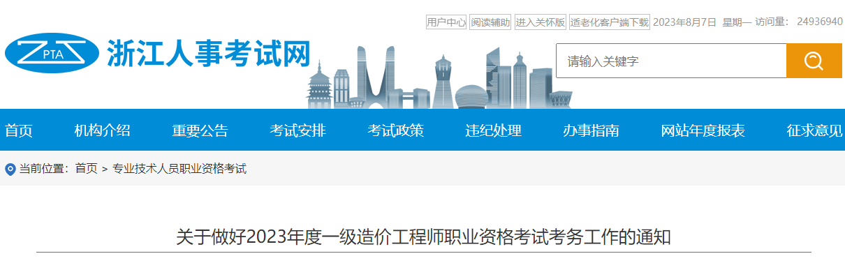 2023年浙江一级造价工程师职业资格考试报名工作通知08-08