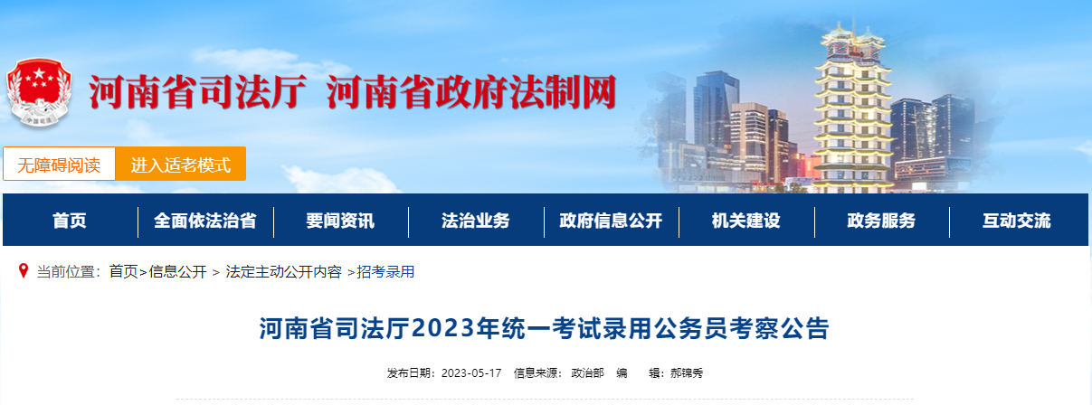 原文标题:河南省司法厅2023年统一考试录用公务员考察公告