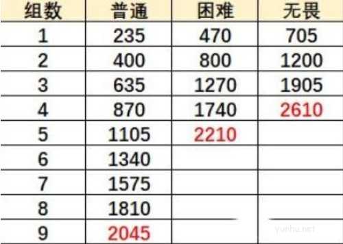 第3组(无尽刷新):积分普通235,困难470,无畏705