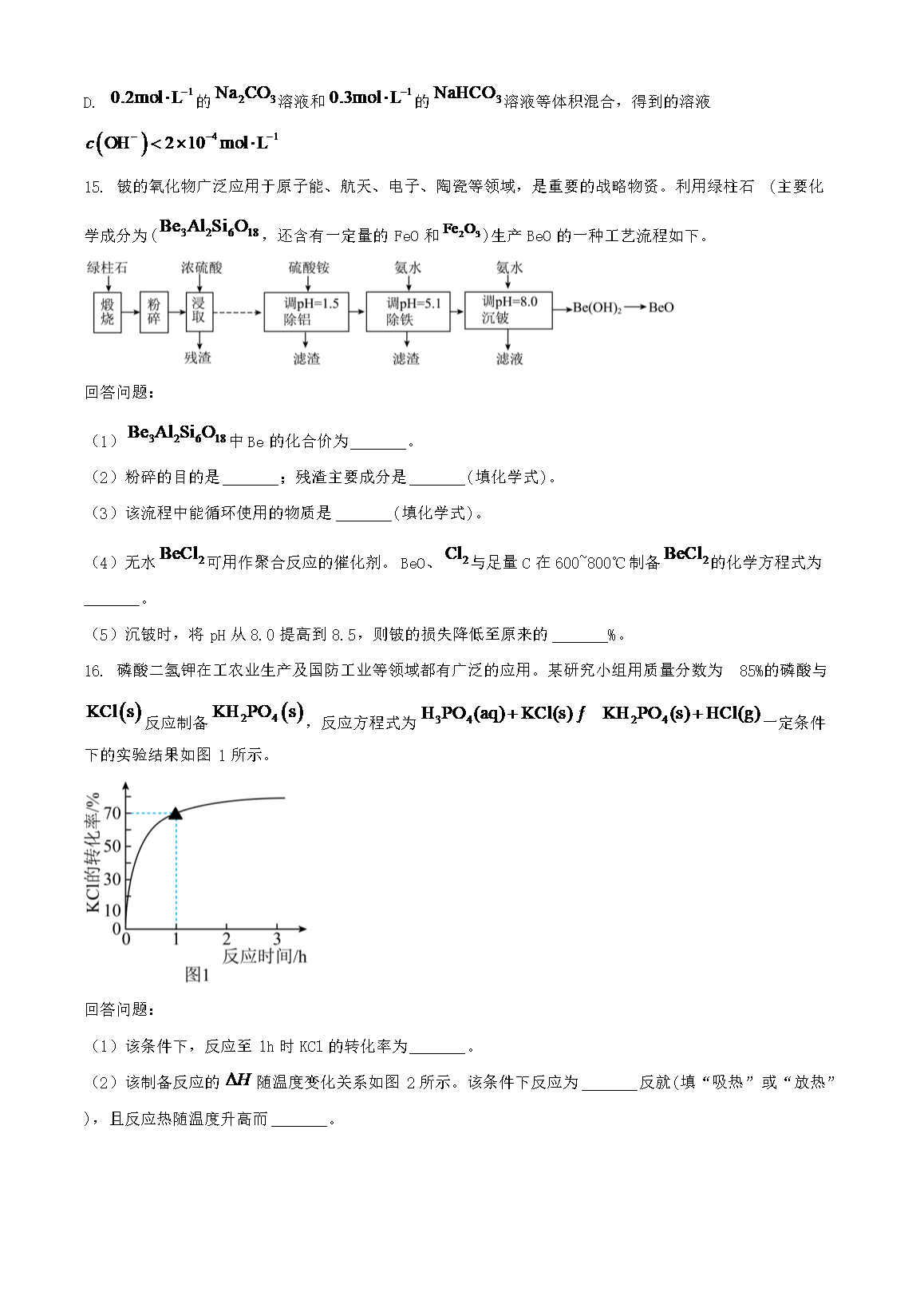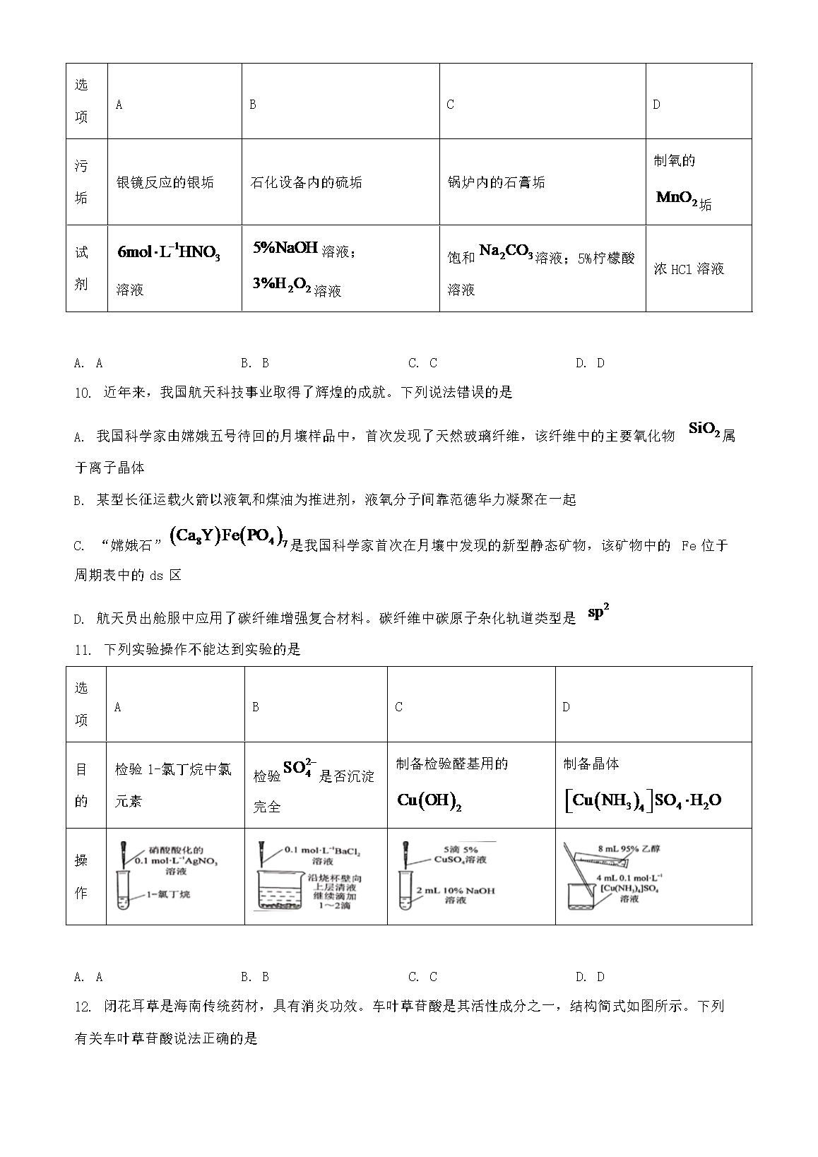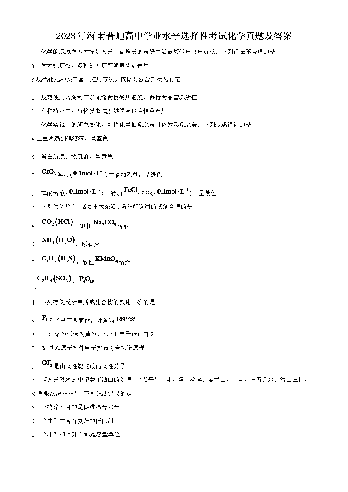 2023年海南普通高中学业水平选择性考试化学真题及答案(Word版)08-16