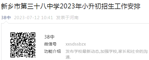 河南新乡市第三十八中学2023年小升初招生工作安排07-14