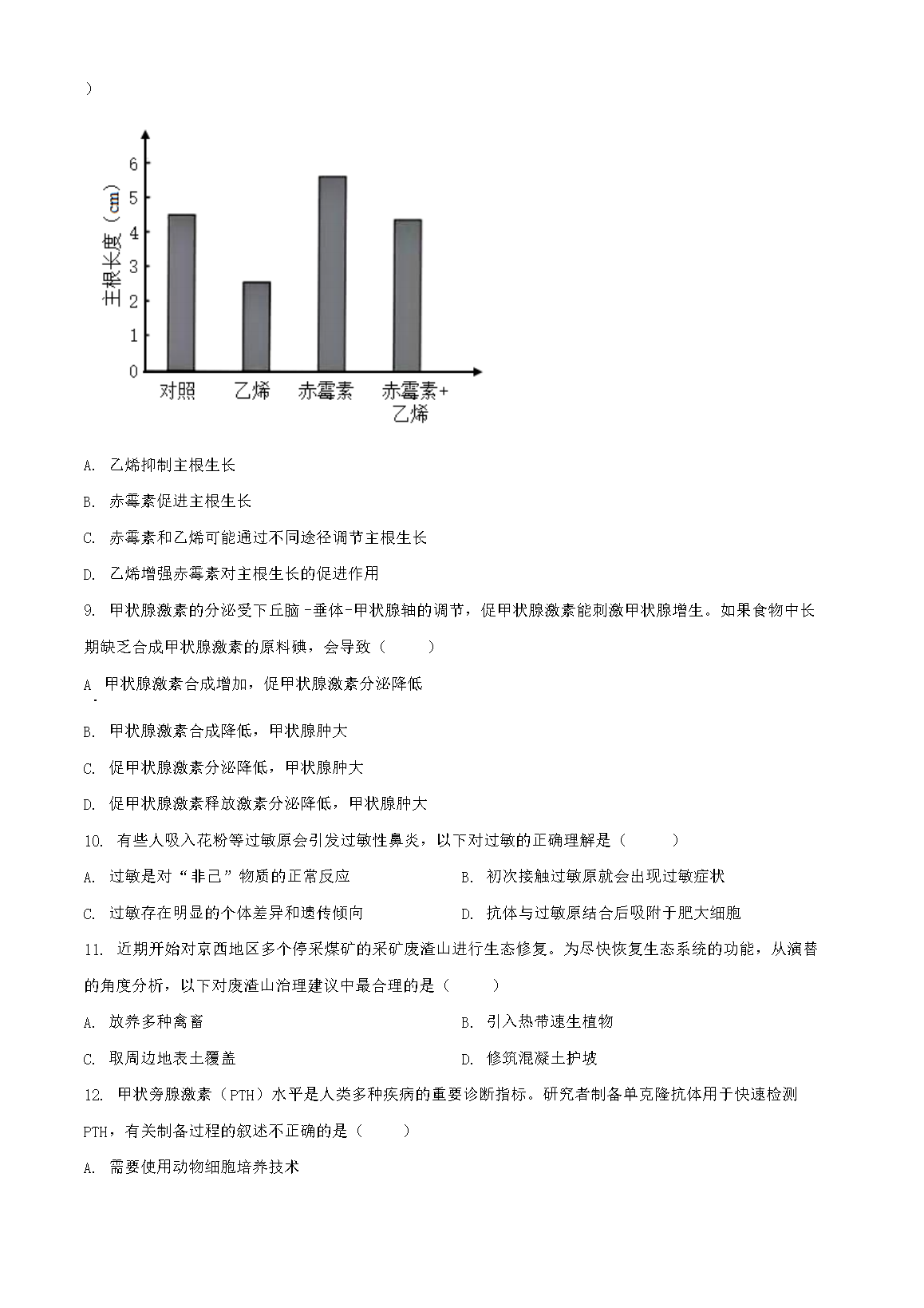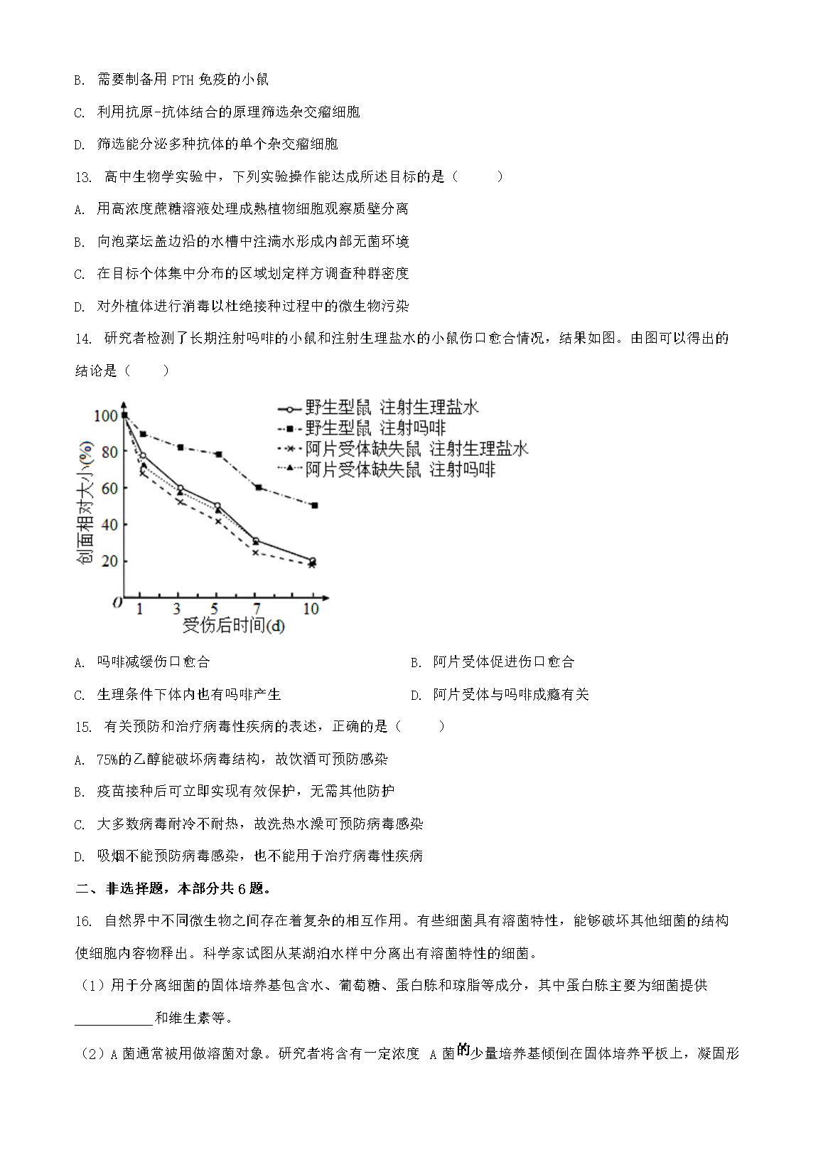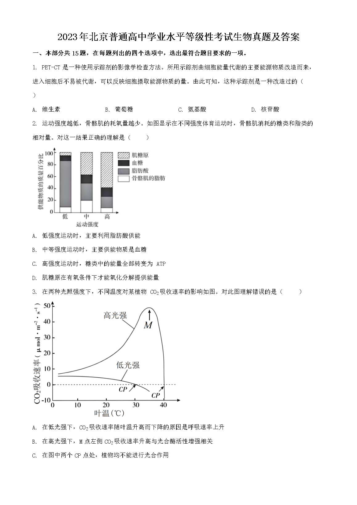 2023年北京普通高中学业水平等级性考试生物真题及答案(Word版)07-13