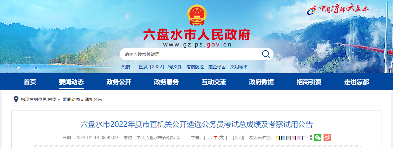 2022年贵州六盘水市直机关遴选公务员考试总成绩查询及考察试用公告01-14