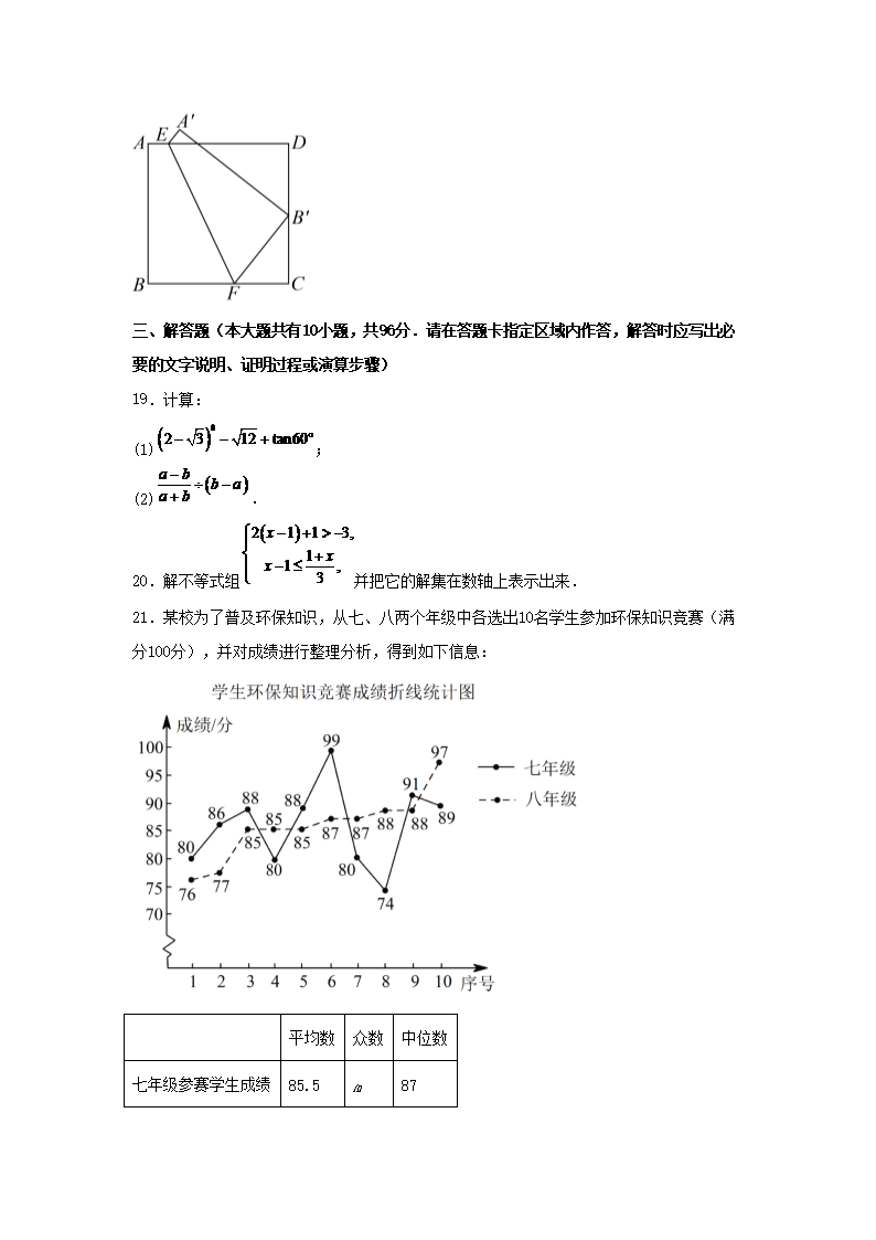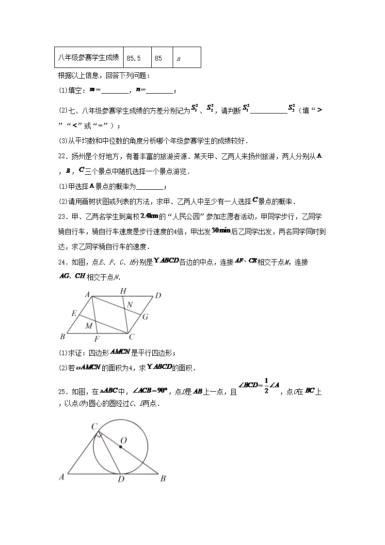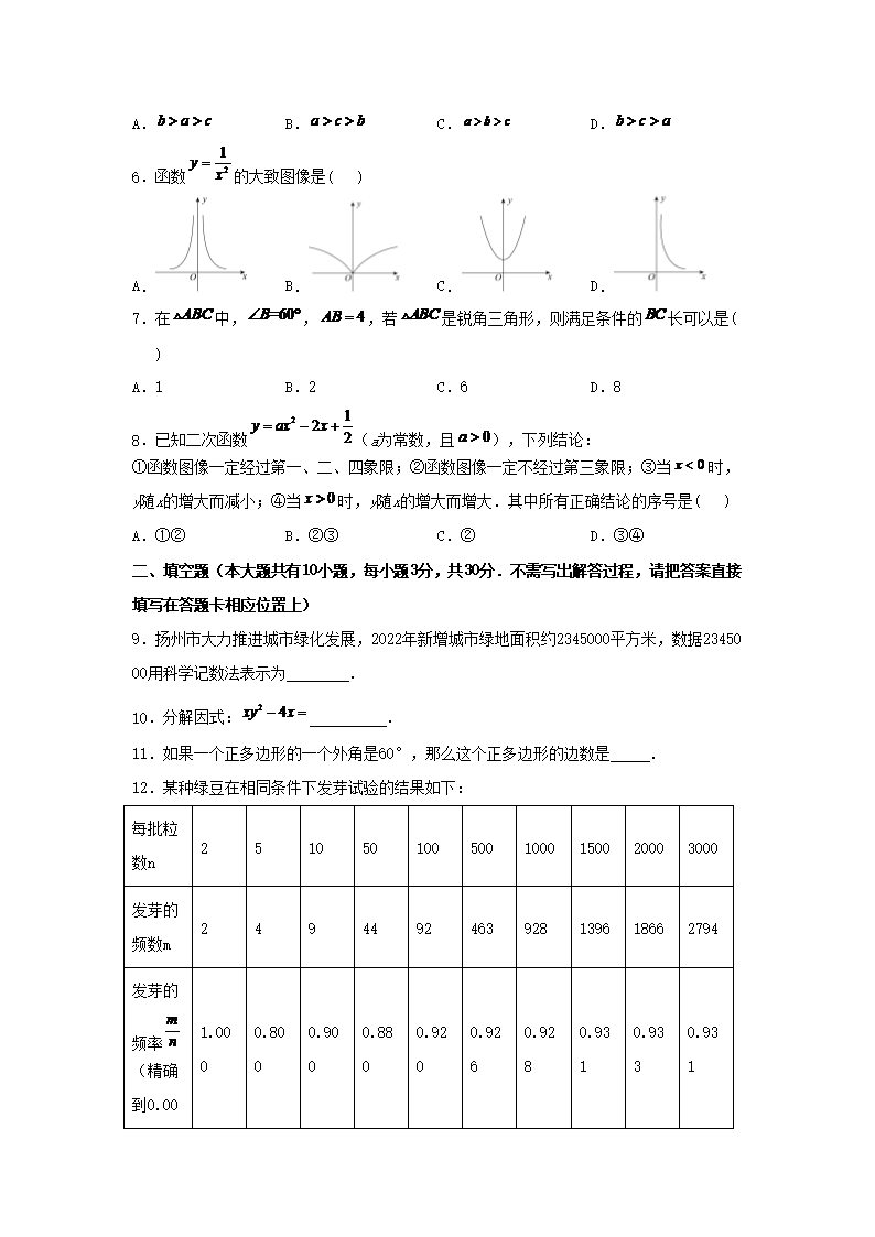 2023年江苏扬州中考数学真题及答案(Word版)09-26