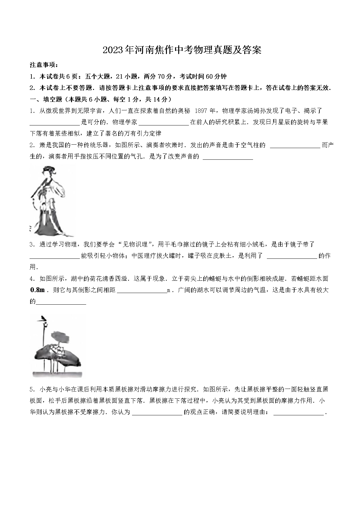 2023年河南焦作中考物理真题及答案(Word版)07-02