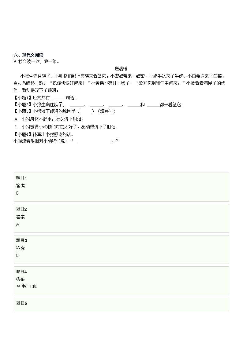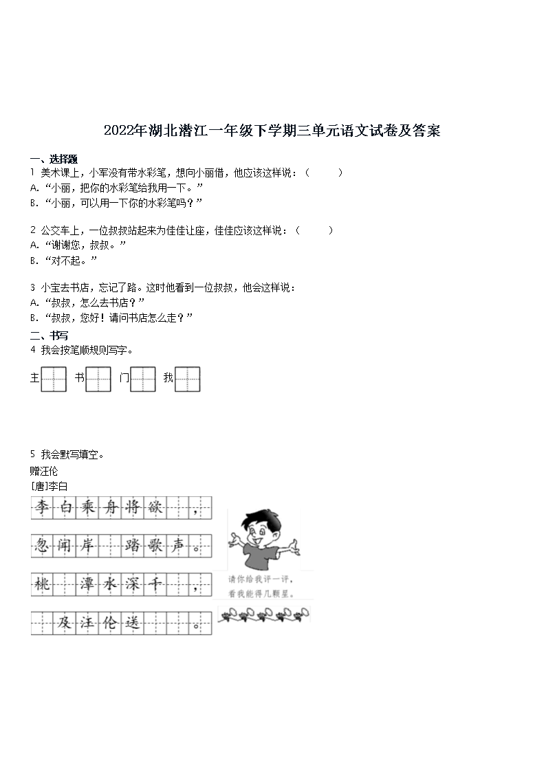 2022年湖北潜江一年级下学期三单元语文试卷及答案(Word版)08-11