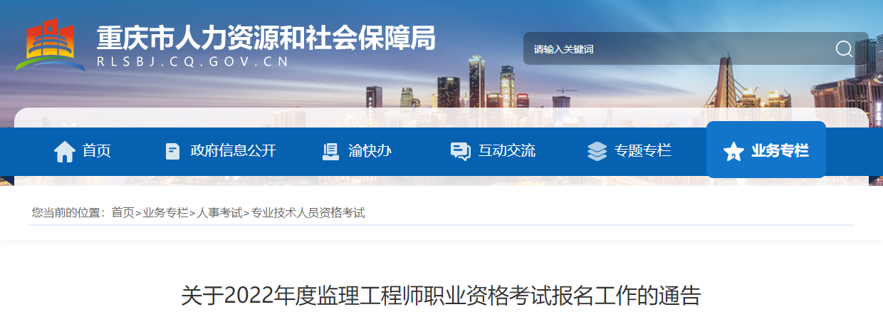 【#监理师考试# 导语】®文档大全网从重庆市人力资源和社会保障局了解到,《2022年重庆监理工程师职业资格考试考务工作通知》现已发布,2022年重庆监理工程师报名时间:3月22日-28日,考试时间:5月14日-15日,®文档大全网小编现将报考信息发布如下: