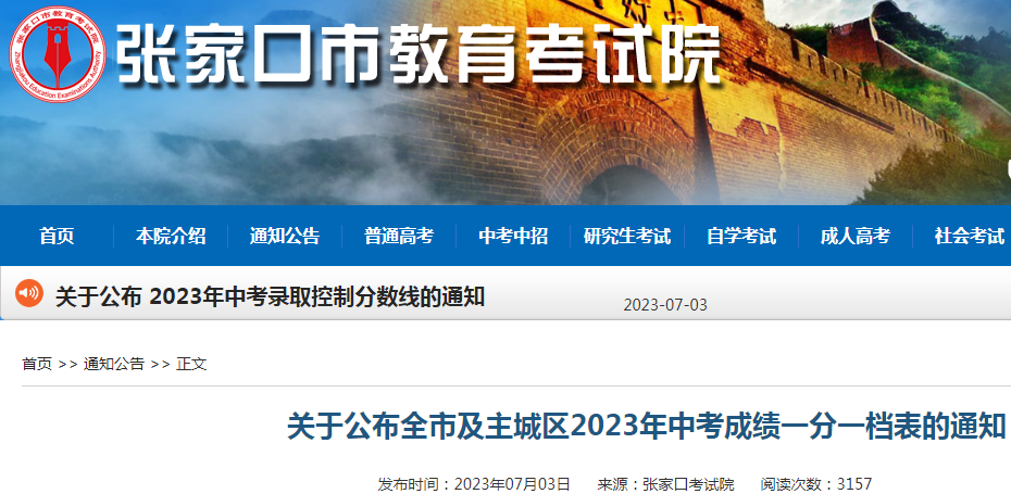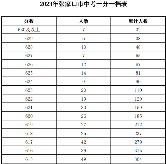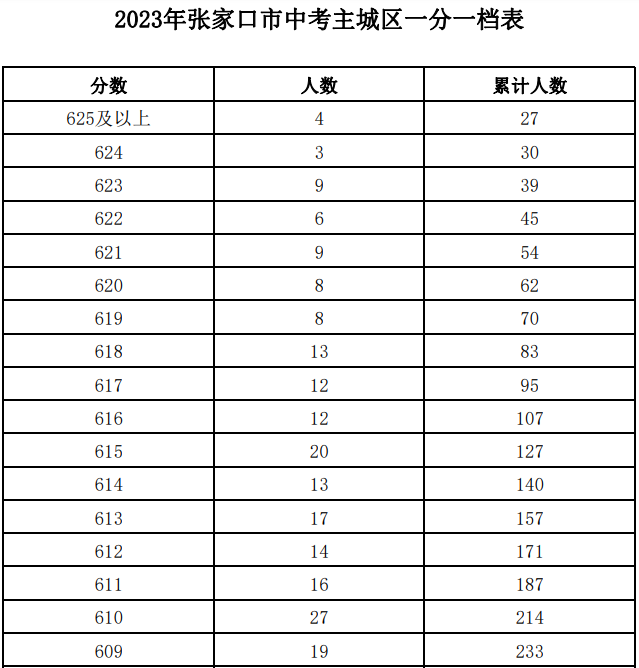 河北张家口全市及主城区2023年中考成绩一分一档表公布07-05