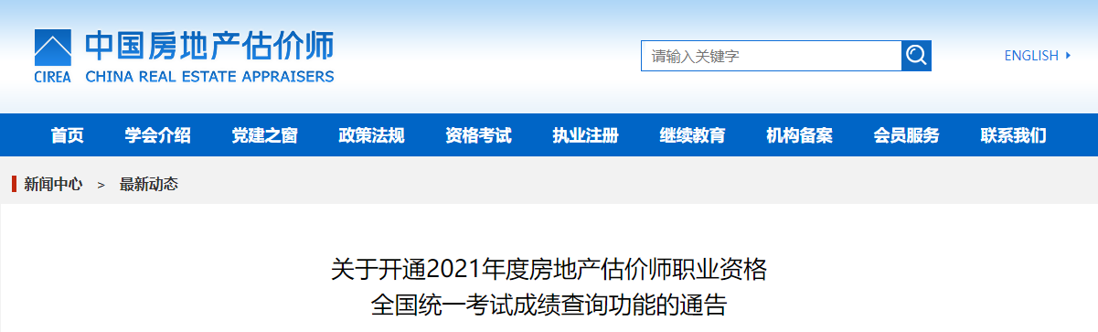 1. 网站查询。登录中国房地产估价师网(网址:http://www.cirea.org.cn/),点击“资格考试”栏目下的“考试成绩查询”。