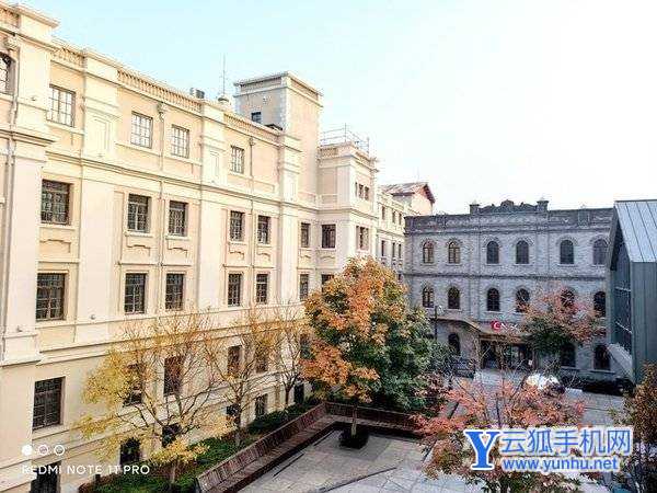 在一倍样张中,红米Note 11 Pro即使开启了HRD融合画面中还会出现过曝的现象,天空高光明显溢出;不得不说一亿像素主摄对画面细节的提升还是非常大的,(近景、远景)建筑物的窗户、围栏即便经过放大仍能清晰可见,在细节方面红米Note 11 Pro做的非常好;接下来看图片中的色彩部分,树叶的红、绿、橙、黄这四种颜色完美复原了当时的场景,浅色建筑由于光照色彩过渡的十分柔和,除了对高光的控制一倍主摄综合实力非常强大。