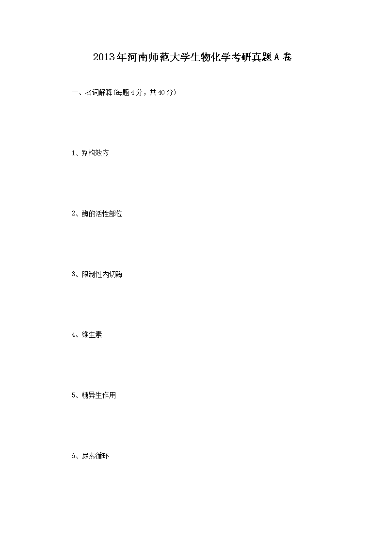 2013年河南师范大学生物化学考研真题A卷(Word版)06-15