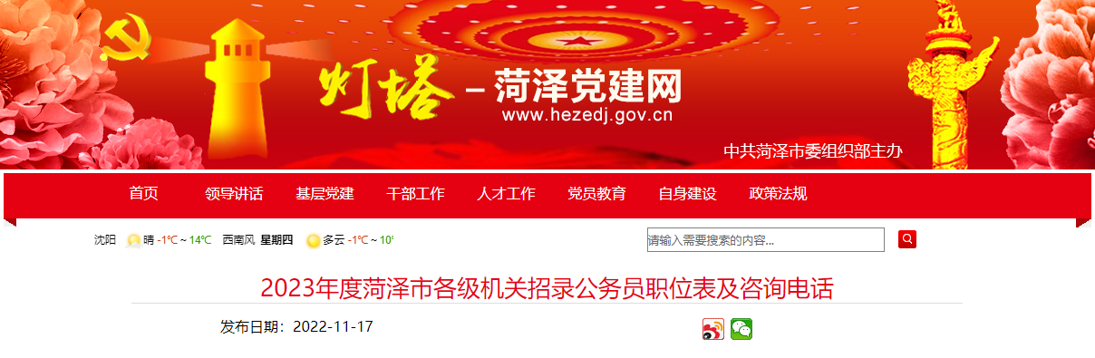 原文标题:2023年度菏泽市各级机关招录公务员职位表及咨询电话
