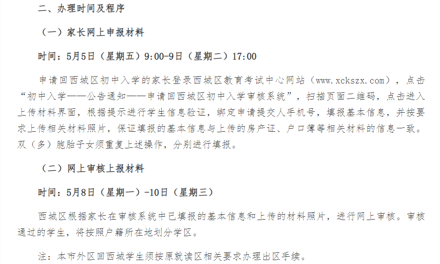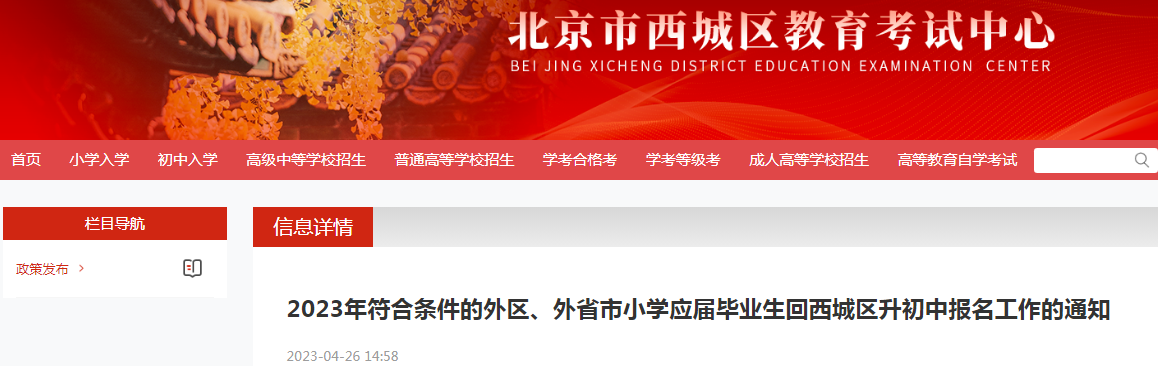2023年符合条件的外区、外省市小学应届毕业生回北京西城区升初中报名工作的通知04-27
