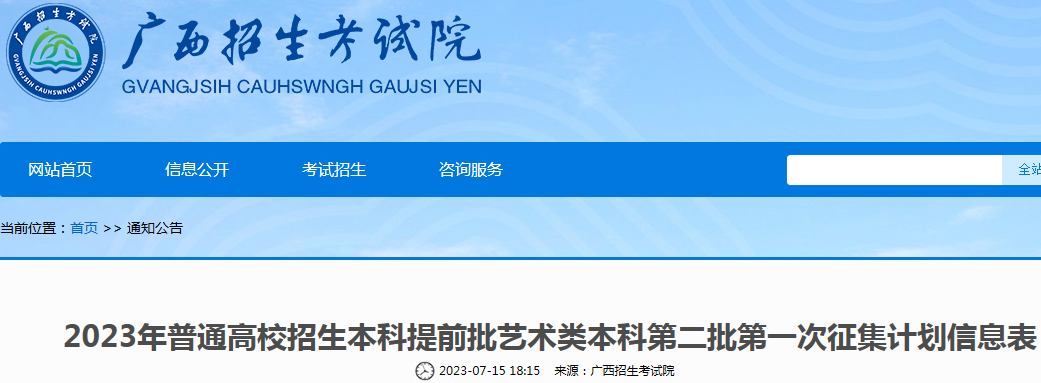 广西2023年普通高校招生本科提前批艺术类本科第二批第一次征集计划信息表07-18