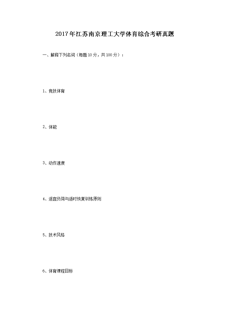 2017年江苏南京理工大学体育综合考研真题(Word版)06-28