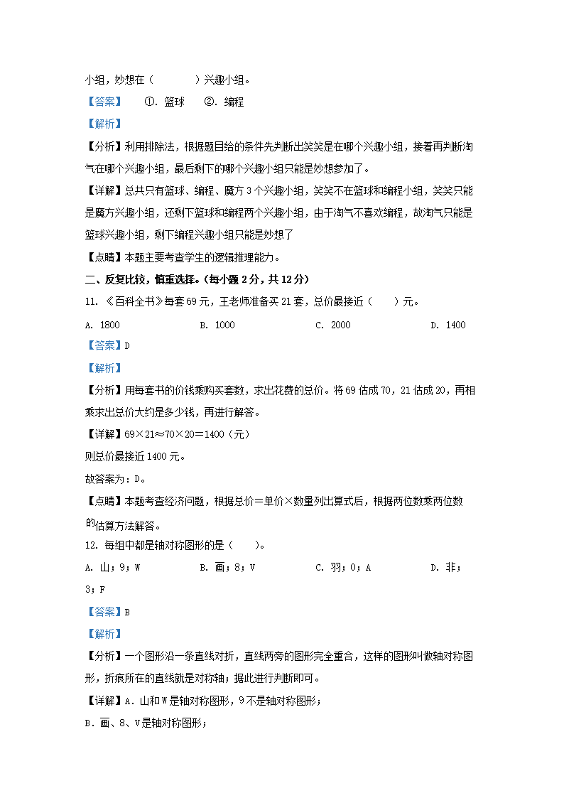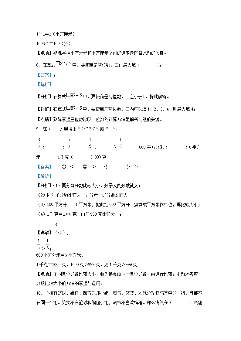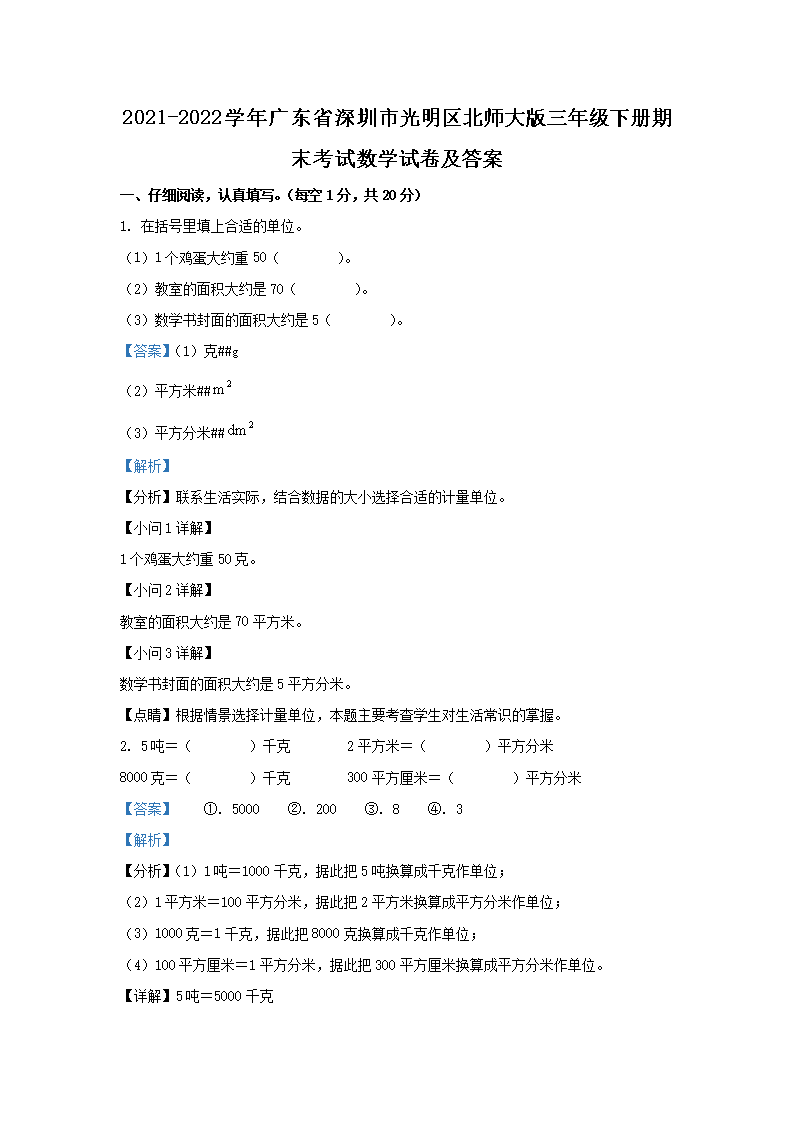 2021-2022学年广东省深圳市光明区北师大版三年级下册期末考试数学试卷及答案(Word版)08-26