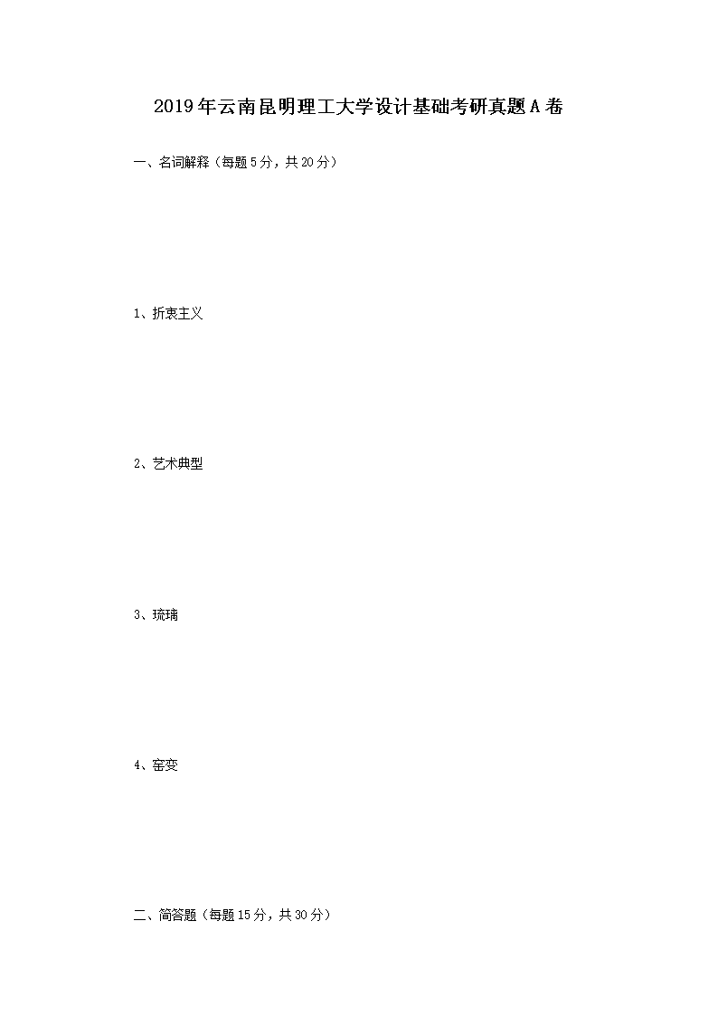 2019年云南昆明理工大学设计基础考研真题A卷(Word版)09-02