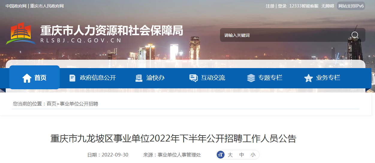 2022年下半年重庆市九龙坡区事业单位公开工作人员招聘公告10-01
