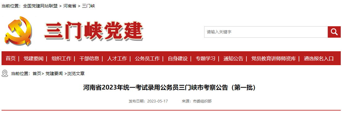 2023年第一批河南三门峡市考试录用公务员考察公告05-19