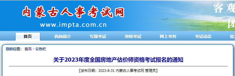 2023年内蒙古房地产估价师职业资格考试报名工作通知09-09