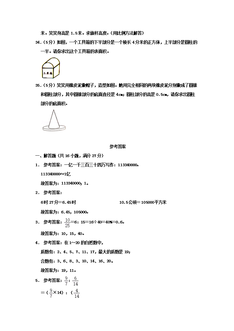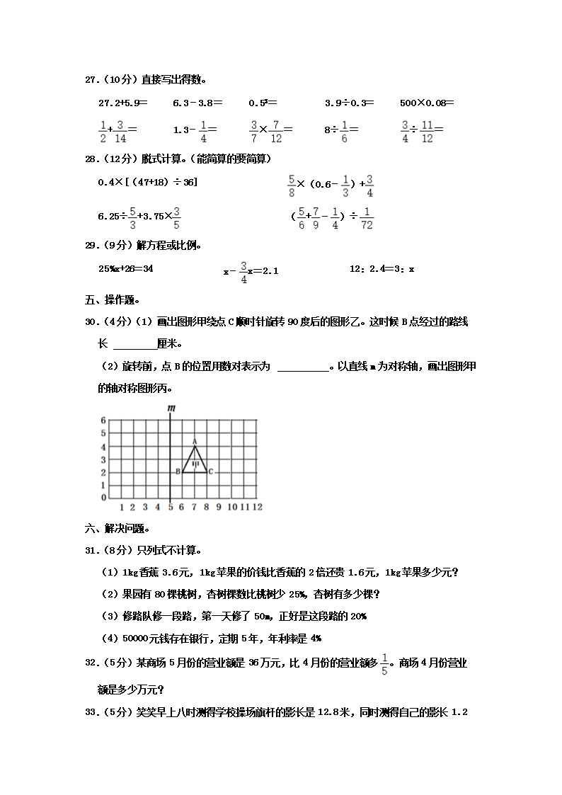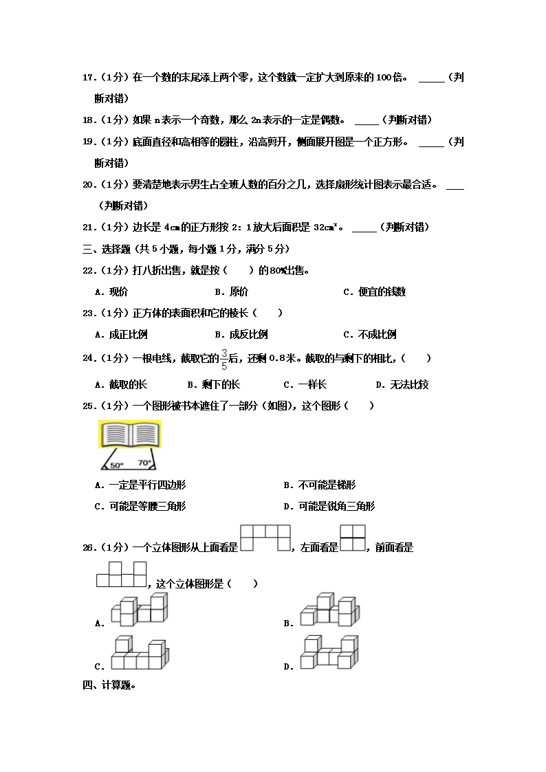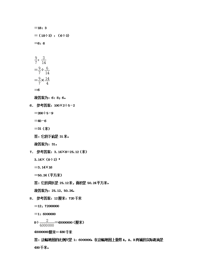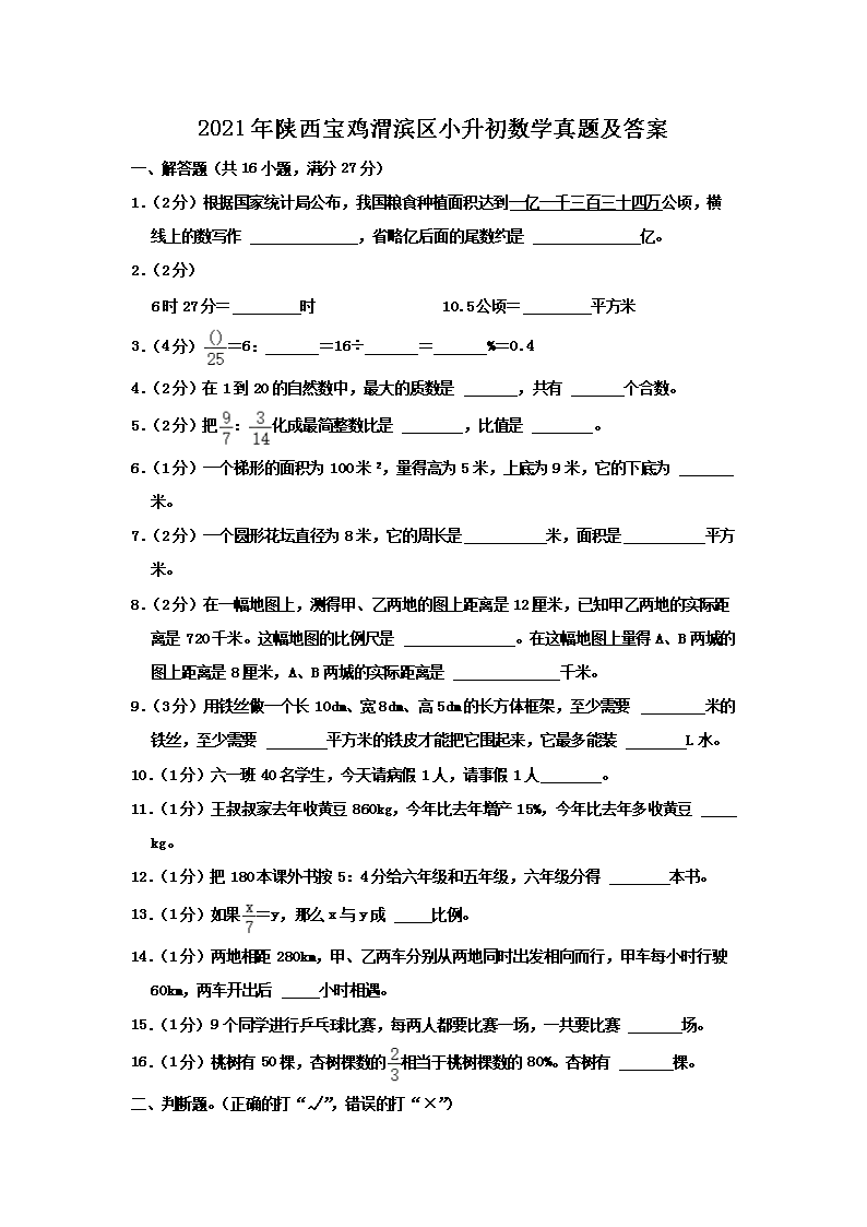2021年陕西宝鸡渭滨区小升初数学真题及答案(Word版)06-15