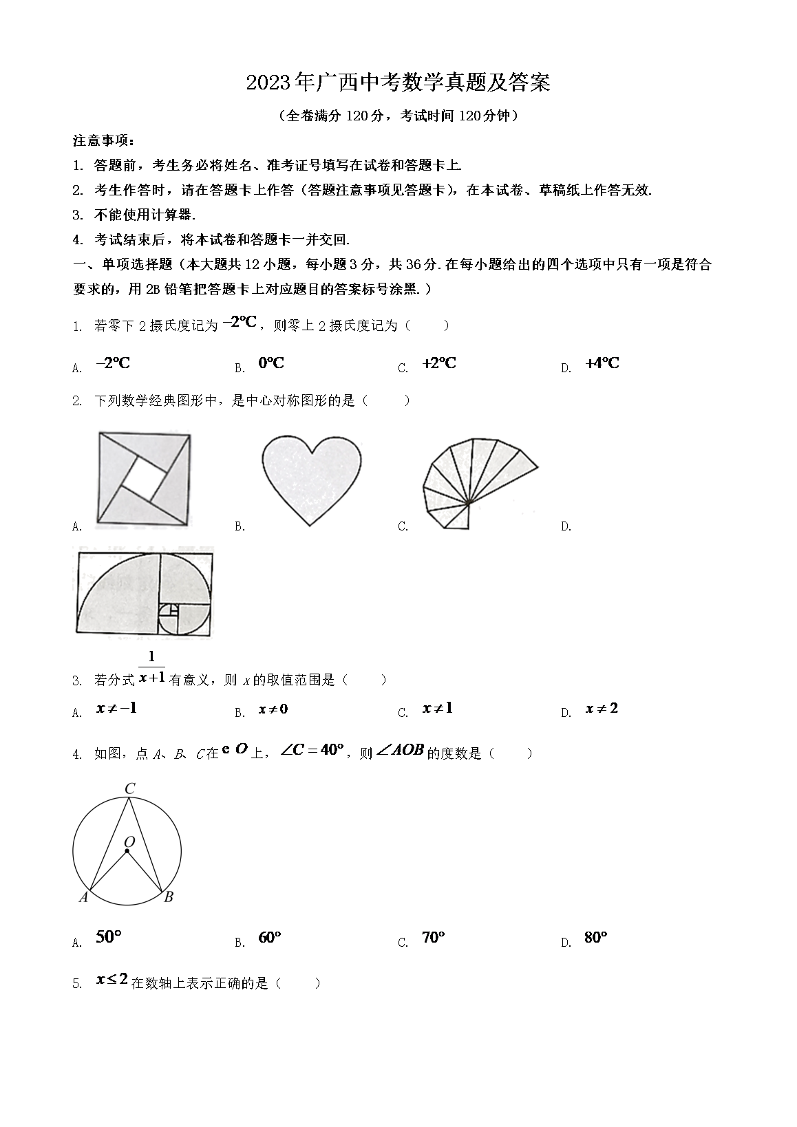 2023年广西中考数学真题及答案(Word版)06-29