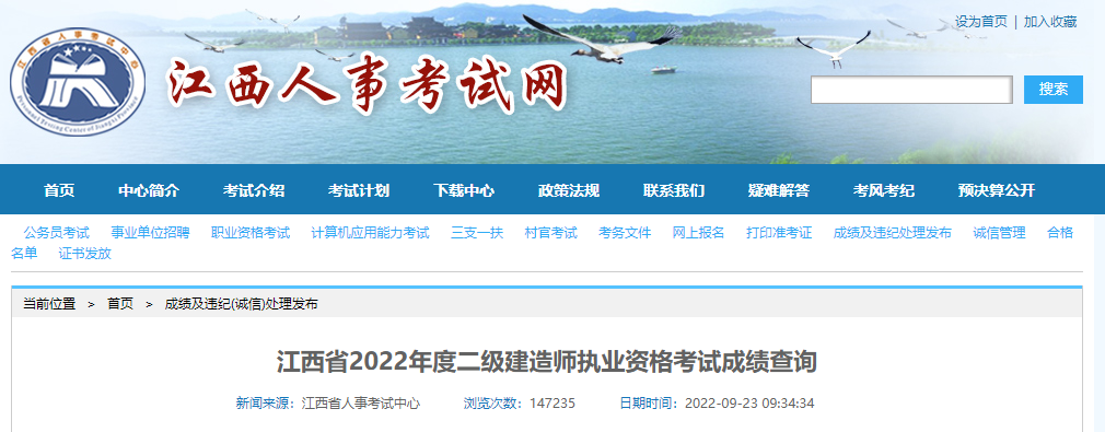 2022年江西二级建造师成绩查询时间:9月23日公布09-24