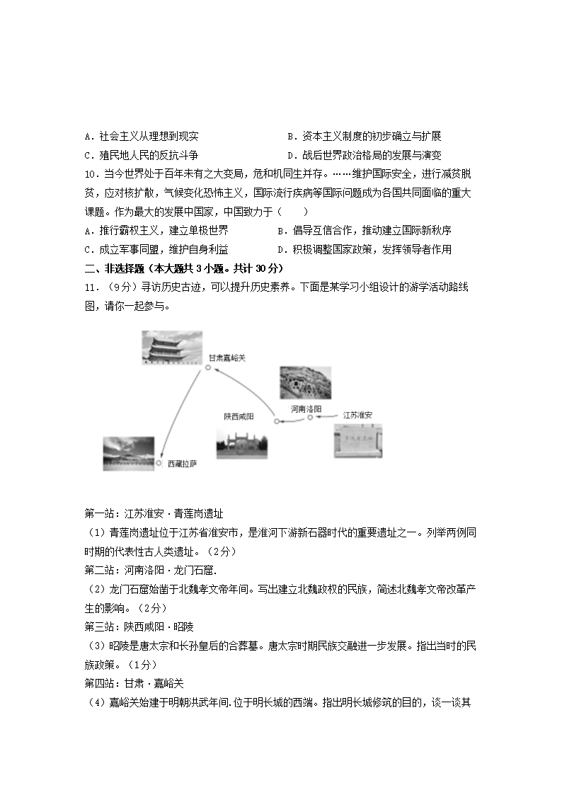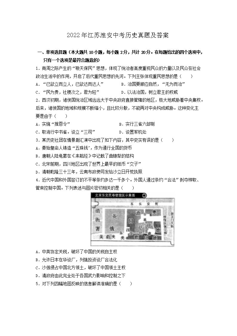 2022年江苏淮安中考历史真题及答案(Word版)05-31