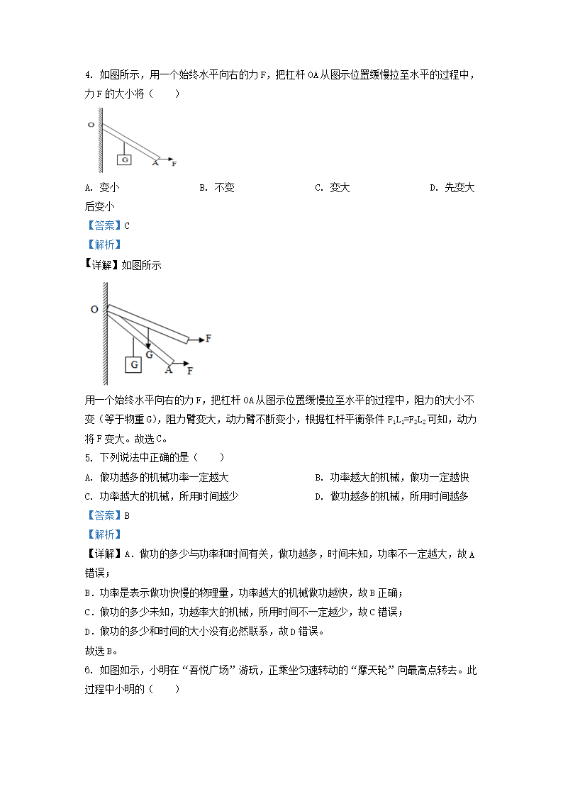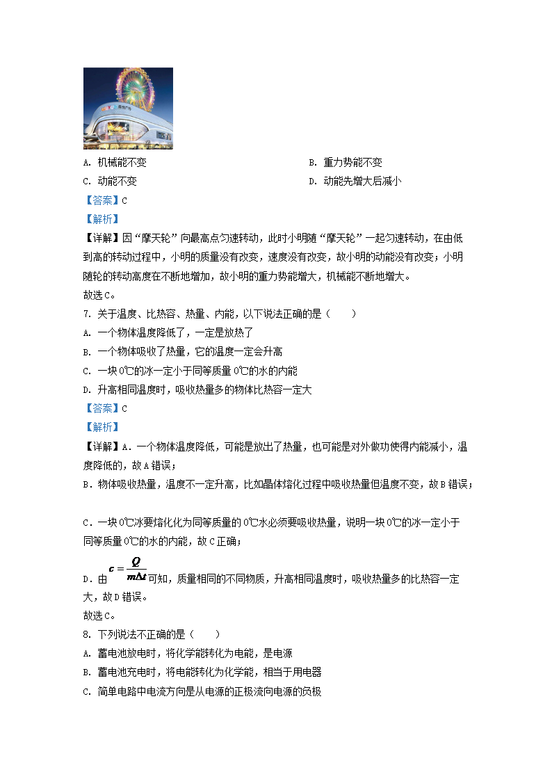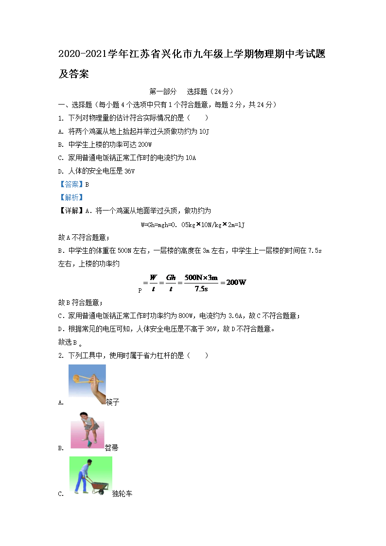 2020-2021学年江苏省兴化市九年级上学期物理期中考试题及答案(Word版)10-10