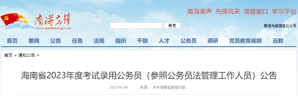 原文标题:海南省2023年度考试录用公务员(参照公务员法管理工作人员)公告