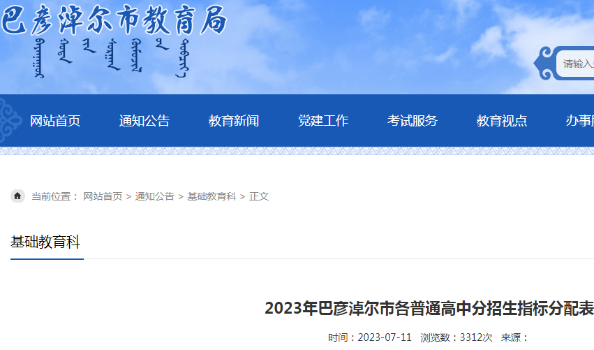 2023年内蒙古巴彦淖尔市各普通高中分招生指标分配表公布07-14