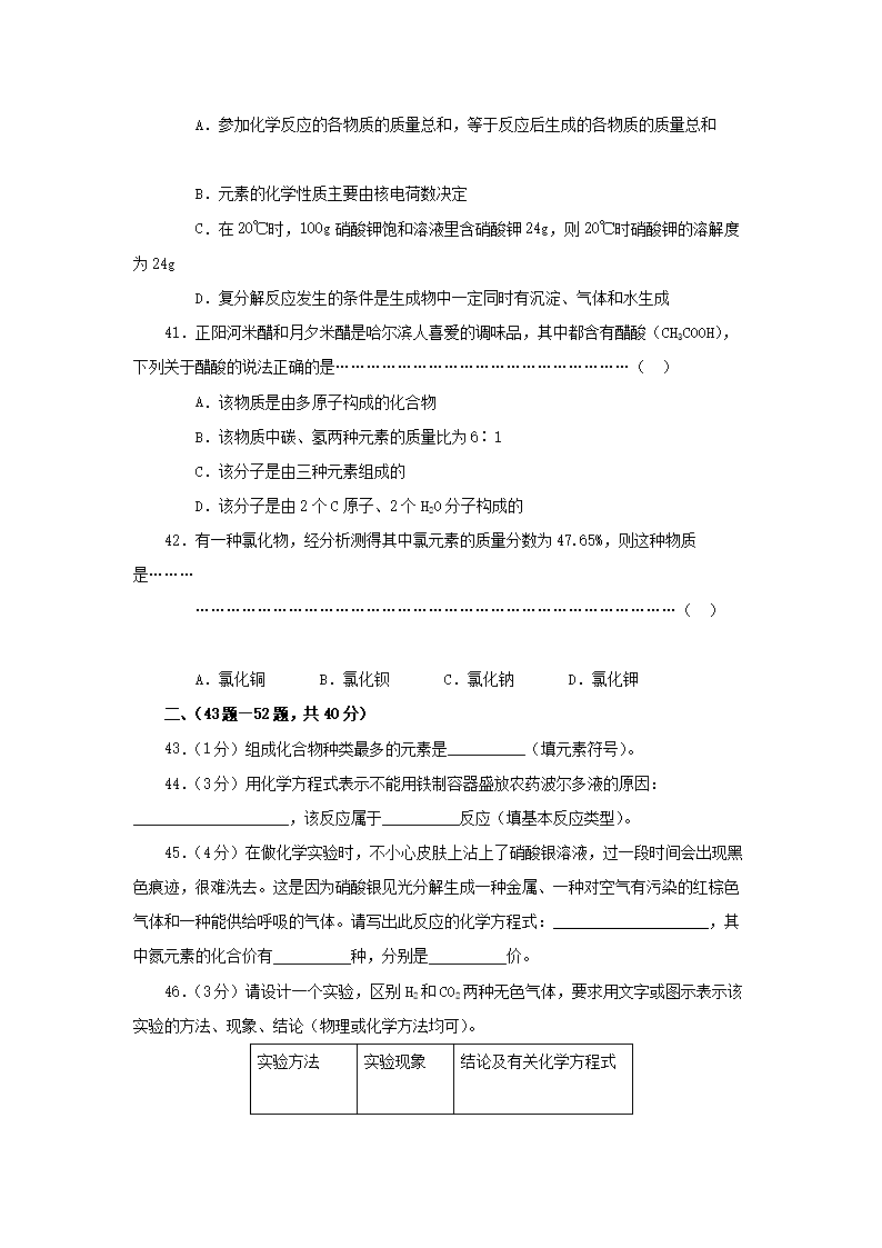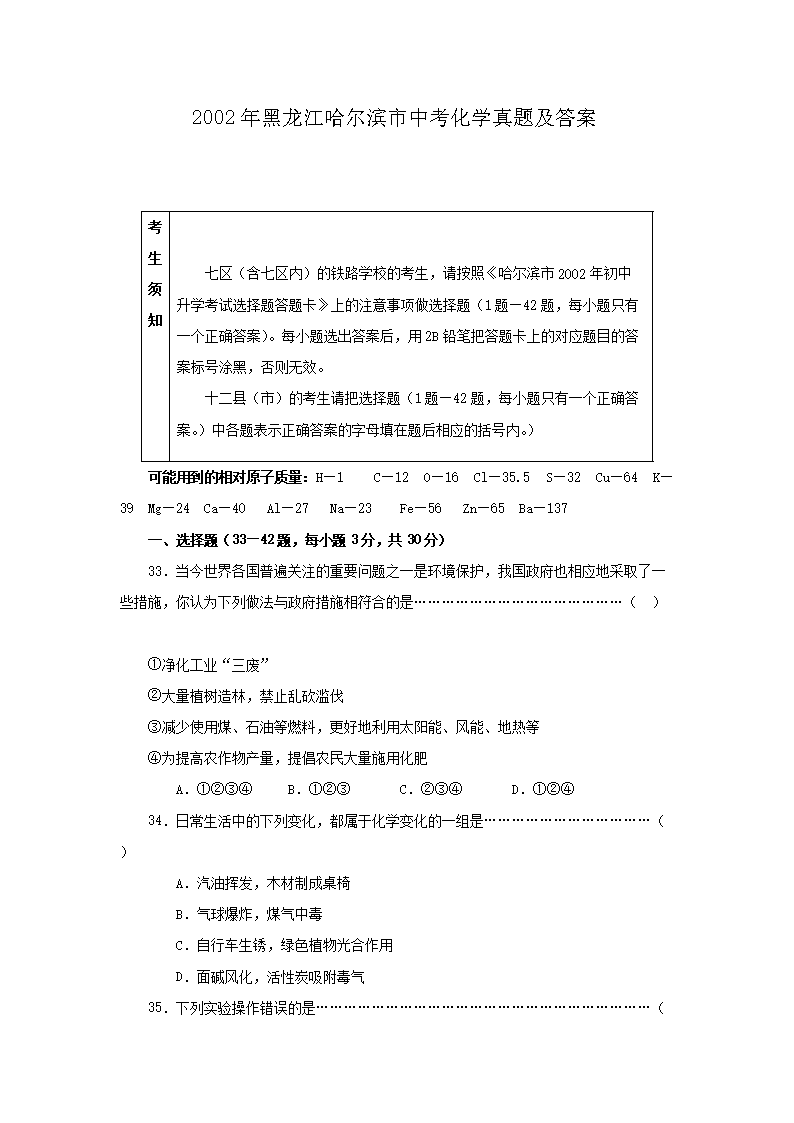 2002年黑龙江哈尔滨市中考化学真题及答案(Word版)05-30