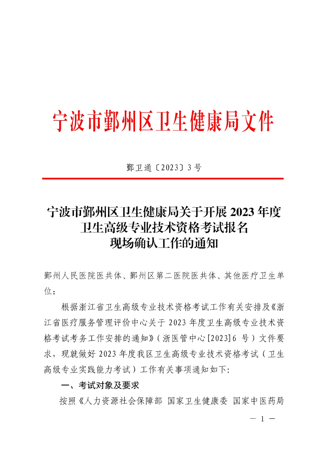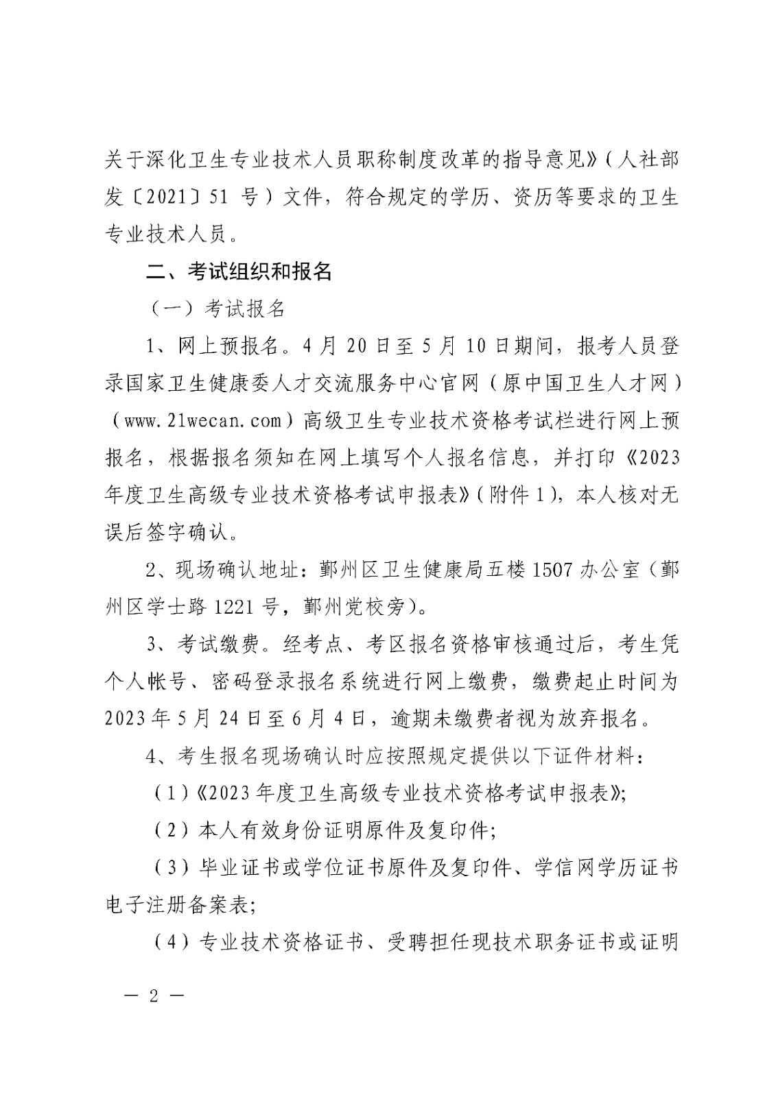 原文标题:关于开展2023年度卫生高级专业技术资格考试报名现场确认工作的通知