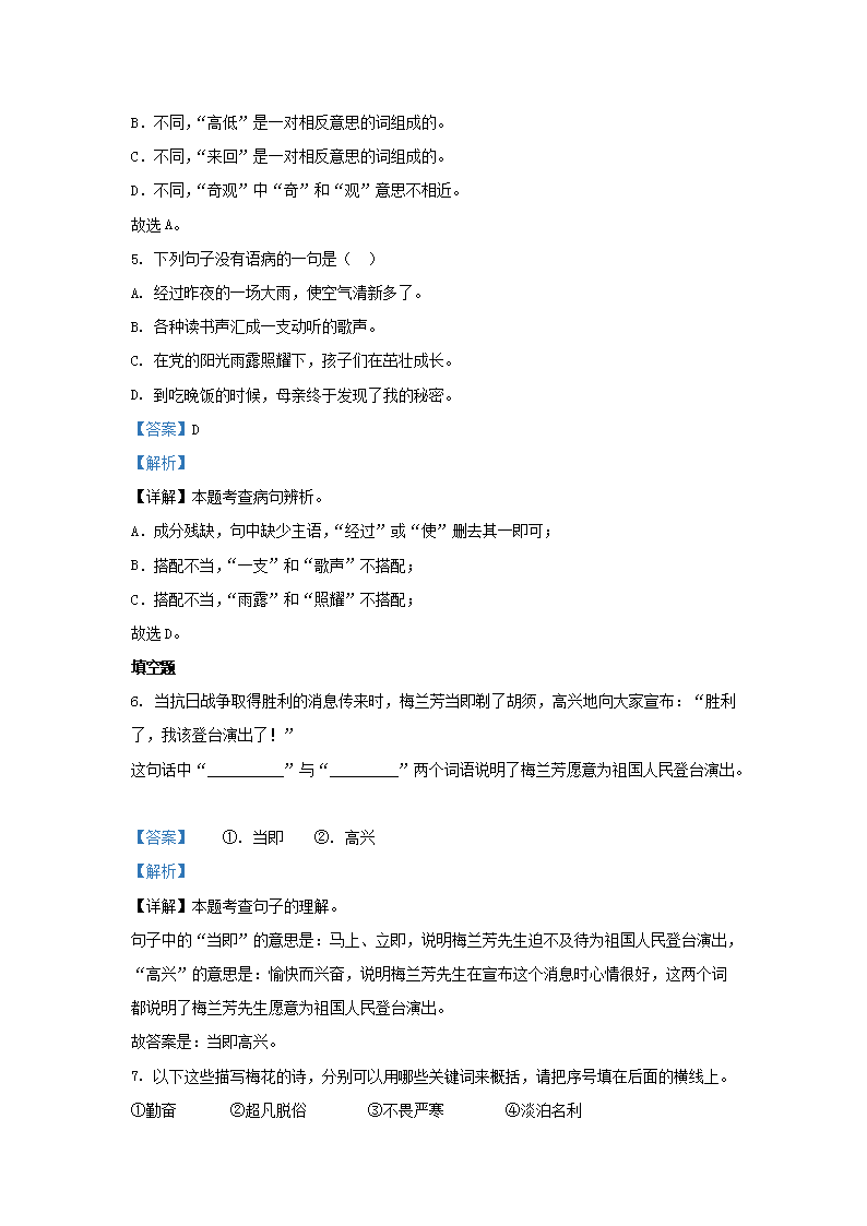 2022-2023学年江苏省南通市南通经济技术开发区四年级上学期期末语文真题及答案(Word版)09-15