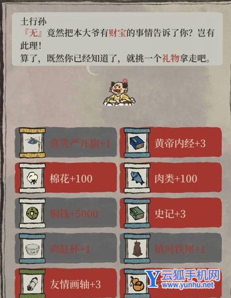 【土行孙】:土行孙有很多财宝,玩家找到他就可以获取一份礼物,而且他的礼物种类特别多,很容易就会挑花眼。