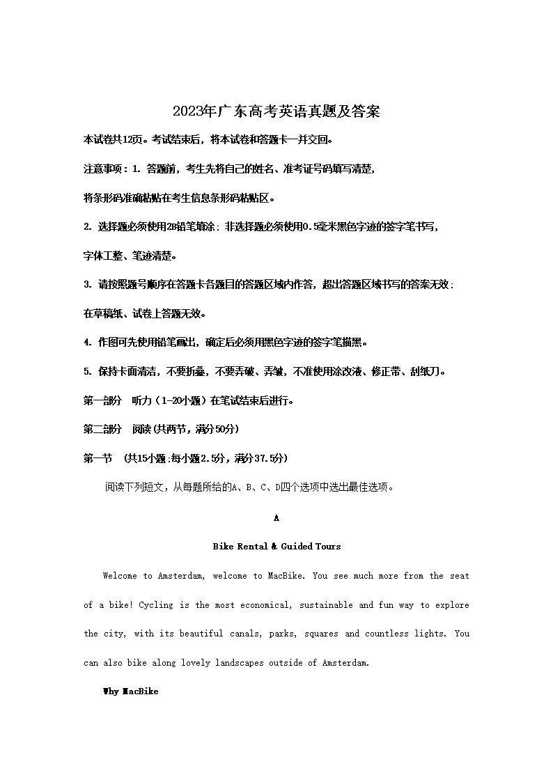 【文档预览】 文档大全网整理发布2023年广东高考英语真题及答案(Word版),前五页预览如下: