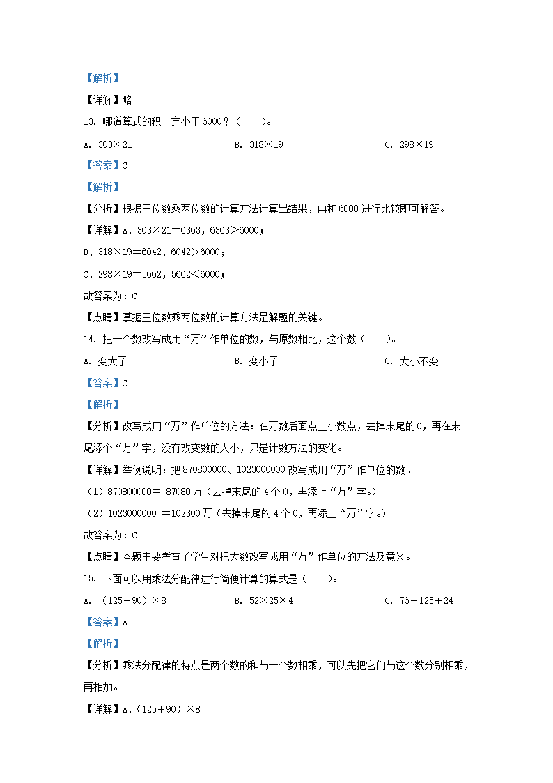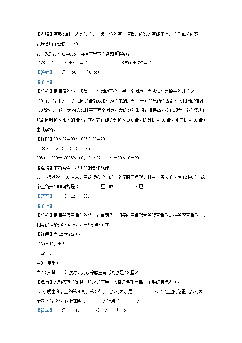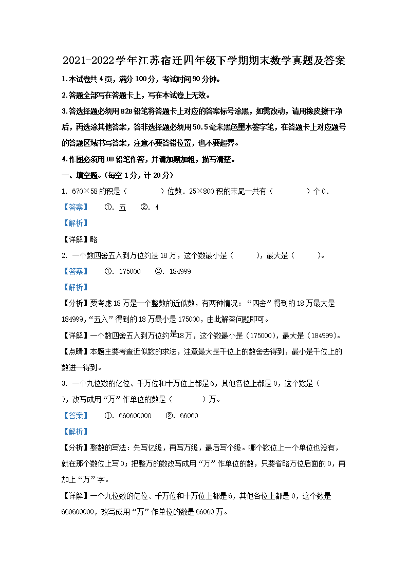 2021-2022学年江苏宿迁四年级下学期期末数学真题及答案(Word版)07-18
