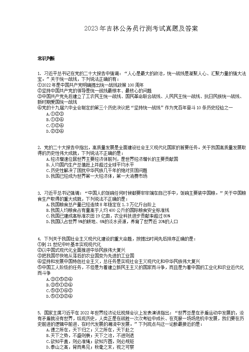 2023年吉林公务员行测考试真题及答案(Word版)06-29