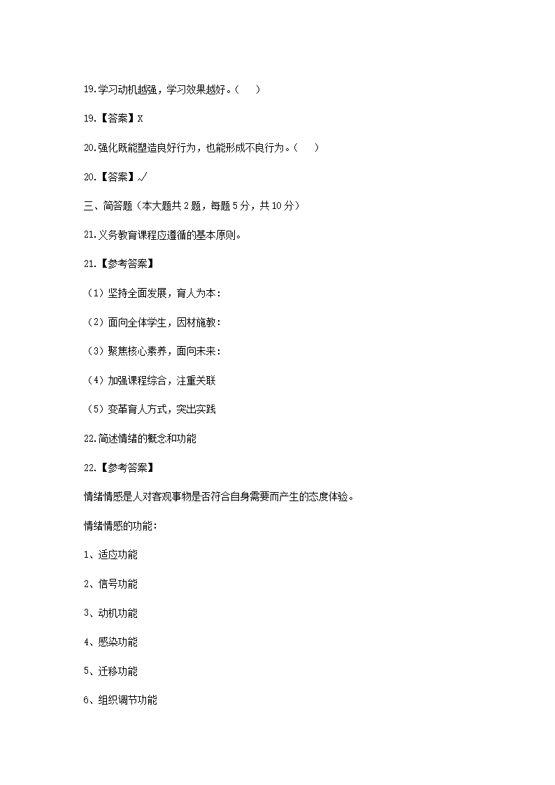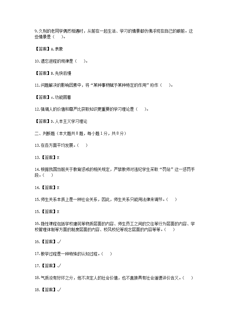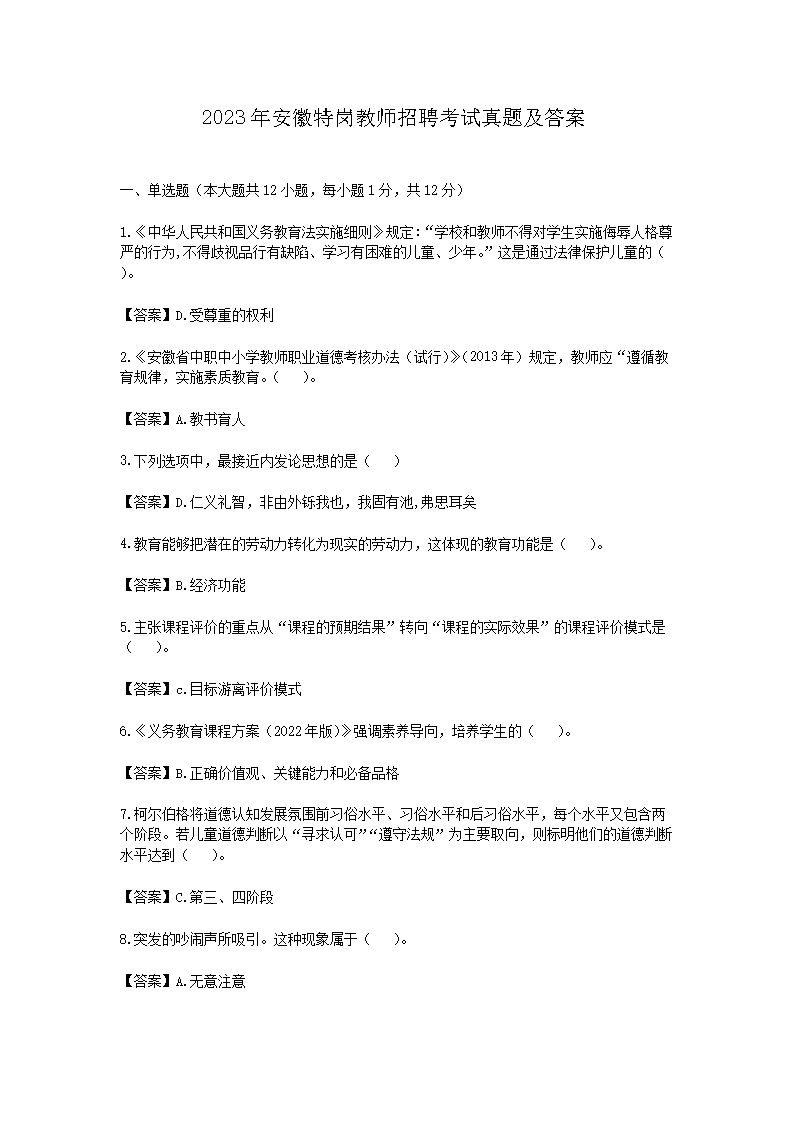 2023年安徽特岗教师招聘考试真题及答案(Word版)10-20