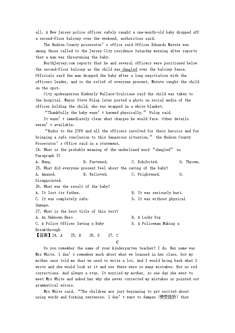 2017中考英语试题考前必做02-28