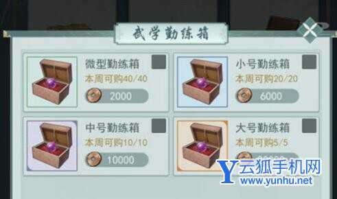 1、集市购买【武学勤练箱】,在这个箱子里能够获得【潜力丹】,使用之后就可以提升自己角色的潜力了,需要一定数量的铜钱进行购买。