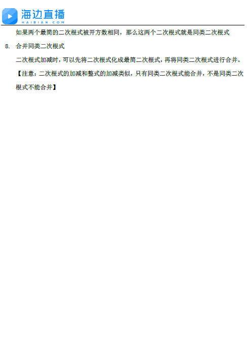 2017中考数学知识点复习(北师版):二次根式08-13