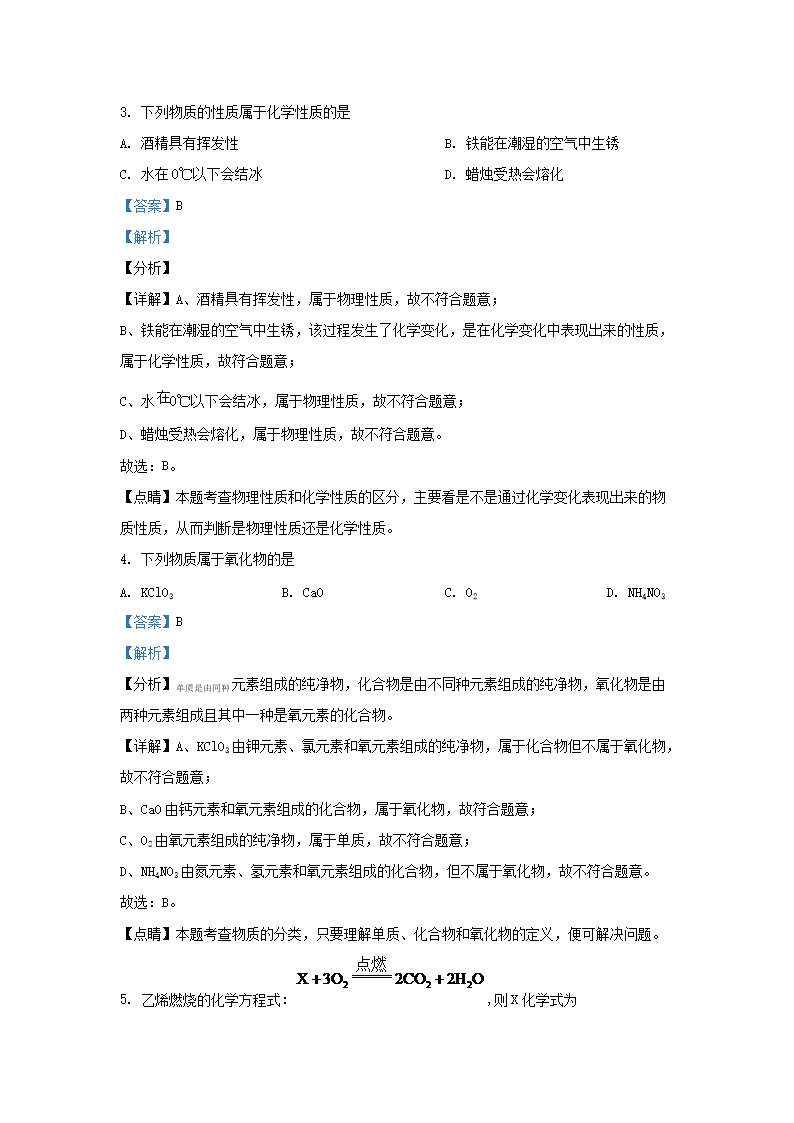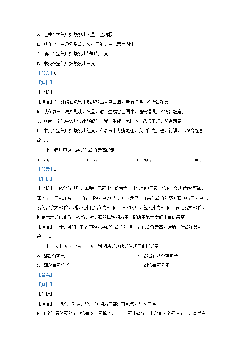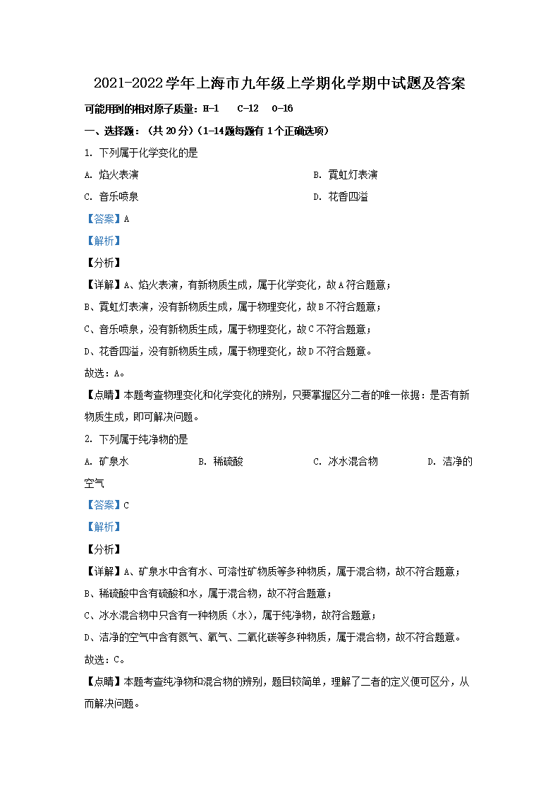 2021-2022学年上海市九年级上学期化学期中试题及答案(Word版)10-20