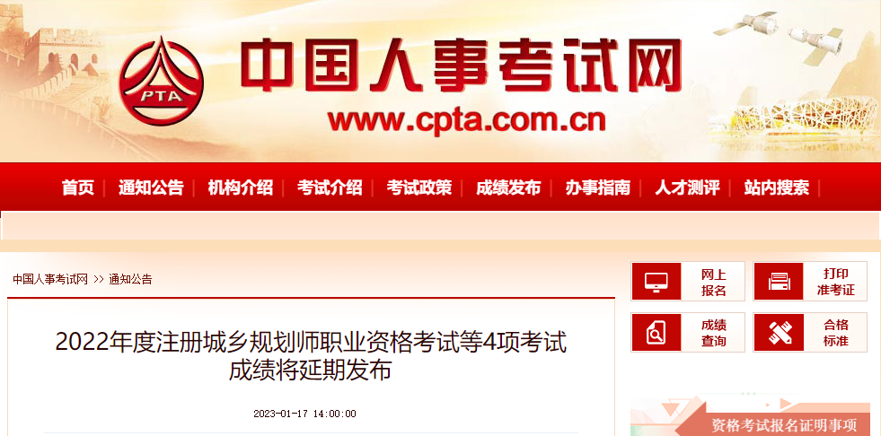 原文标题:2022年度注册城乡规划师职业资格考试等4项考试成绩将延期发布