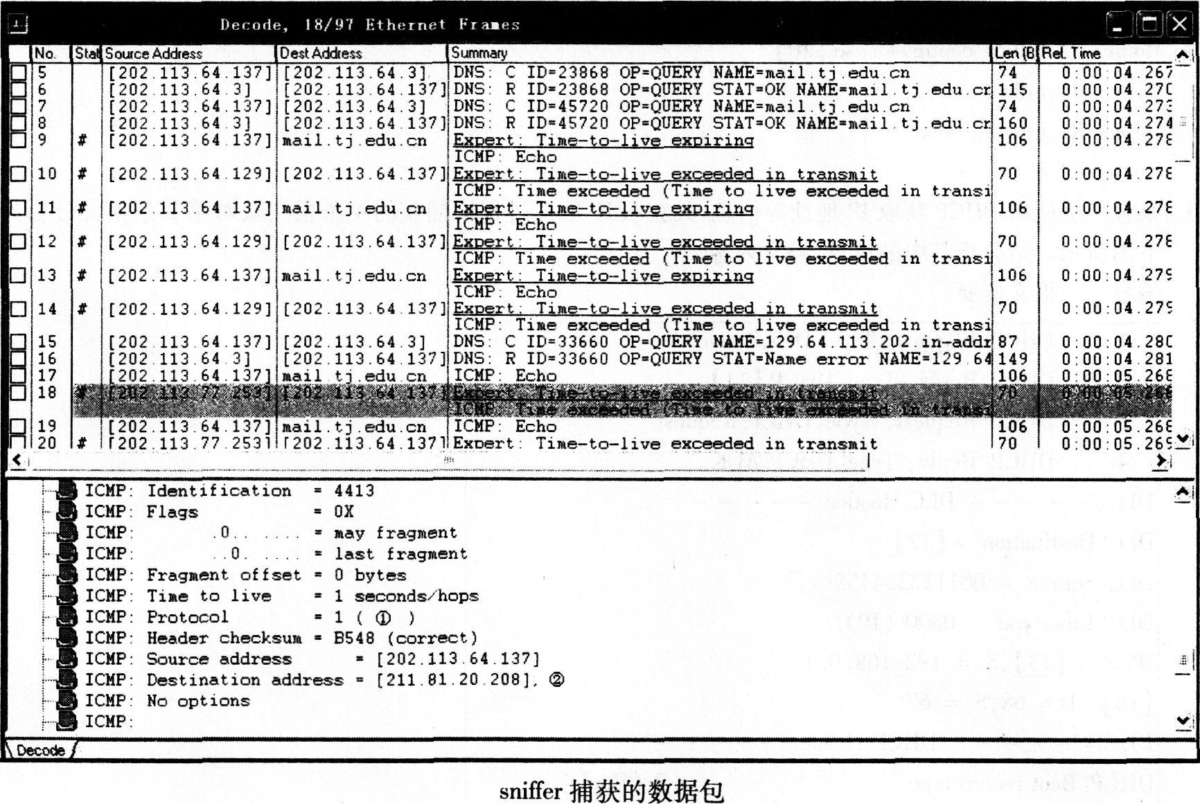 42、 下图是校园网某台主机在命令行模式下执行某个命令时用sniffer捕获的数据包。