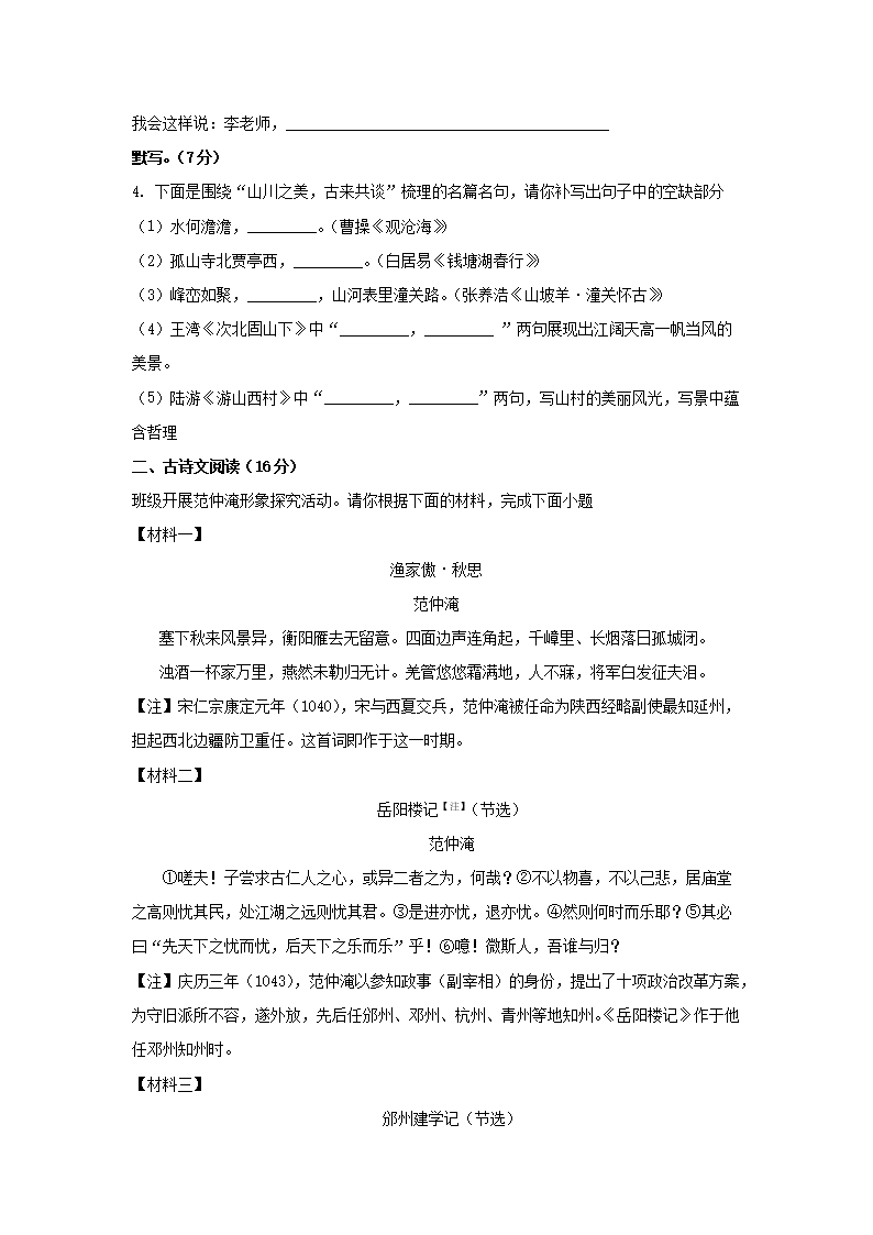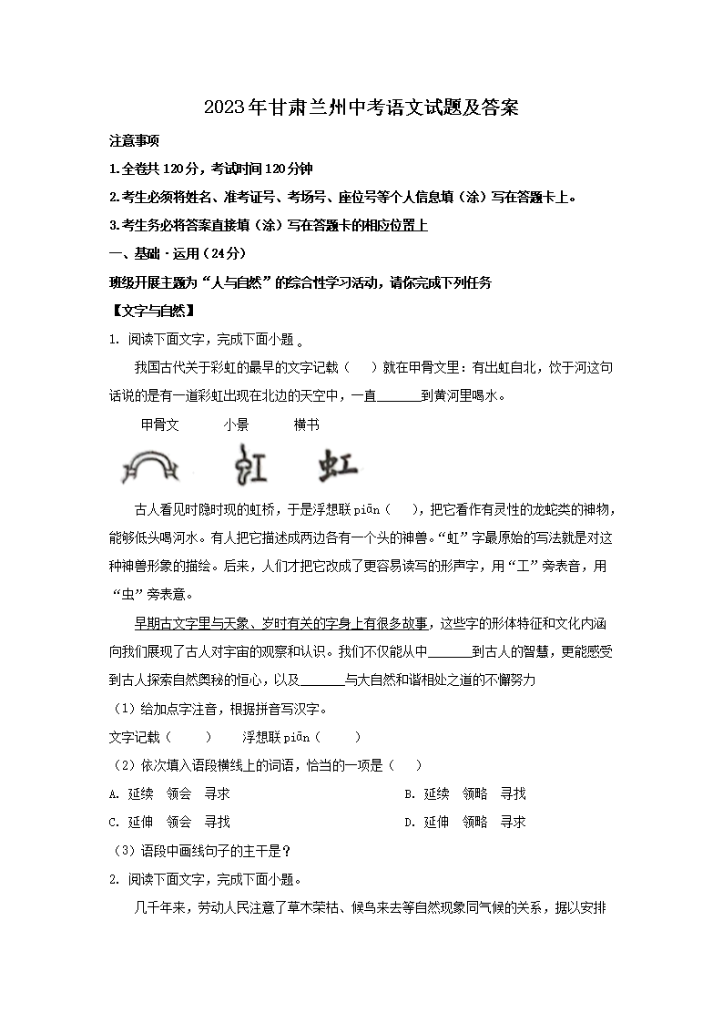 2023年甘肃兰州中考语文试题及答案(Word版)07-06