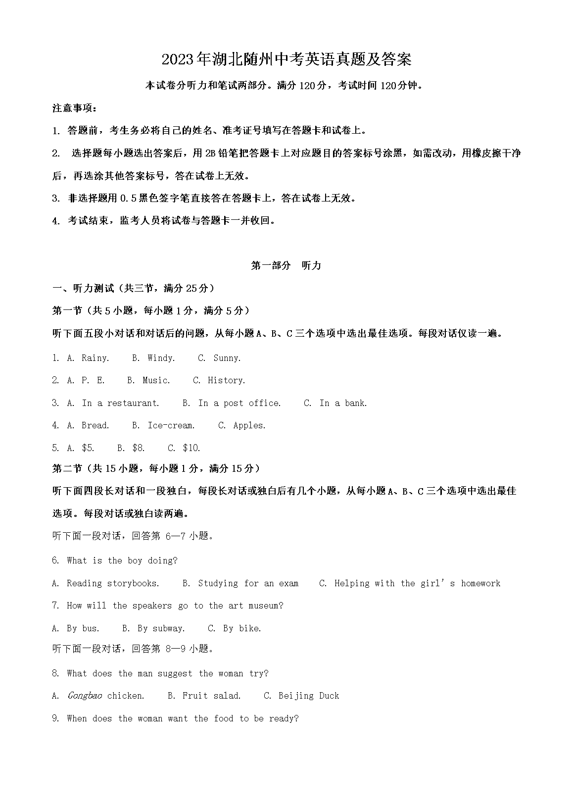 【文档预览】 文档大全网整理发布2023年湖北随州中考英语真题及答案(Word版),前五页预览如下: