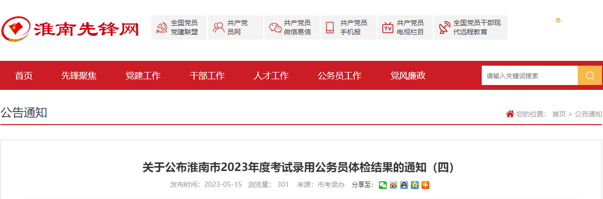 原文标题:关于公布淮南市2023年度考试录用公务员体检结果的通知(四)